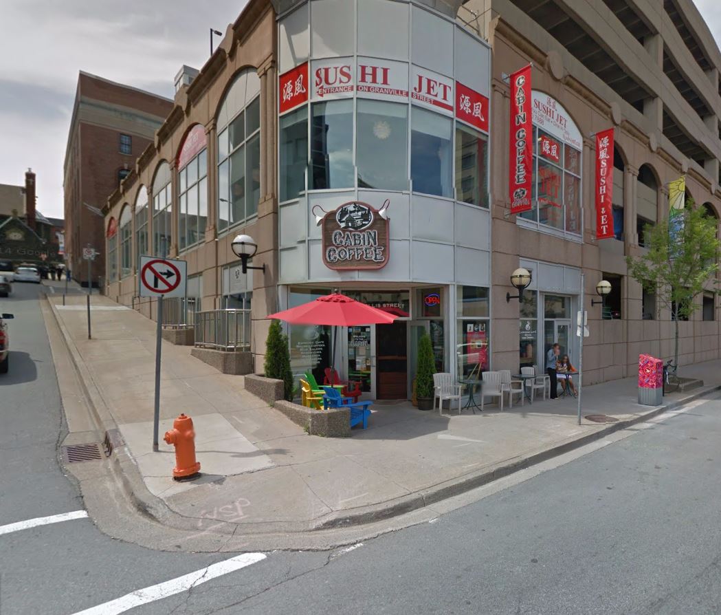This 2014 Google Earth colour snip shows the same corner. One block west on Salter, up the hill, is Barrington Street.