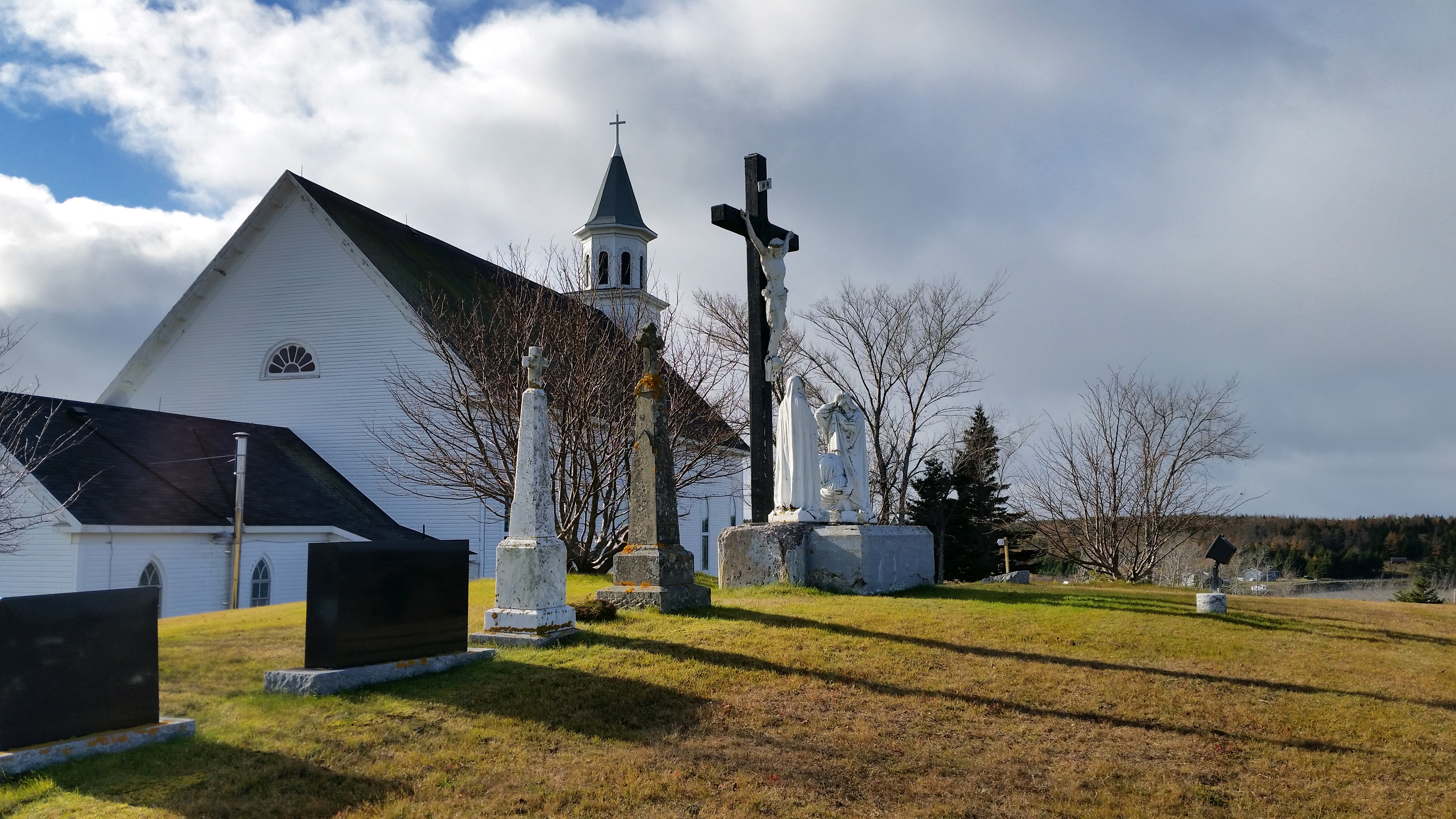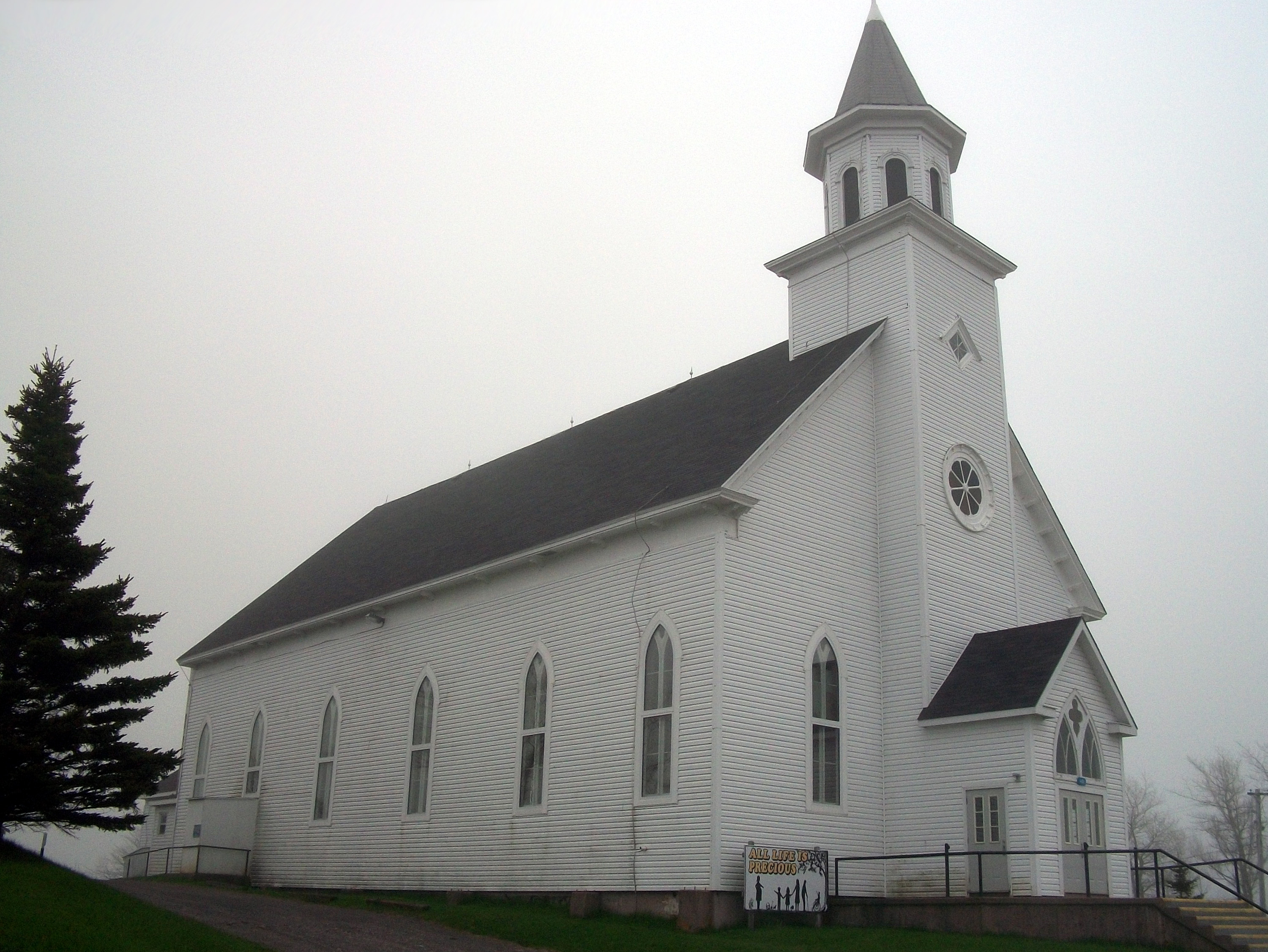 The church is located on Church Point. For those unfamiliar with River Bourgeois, here is a satellite view of River Bourgeois showing points of interest including the church.