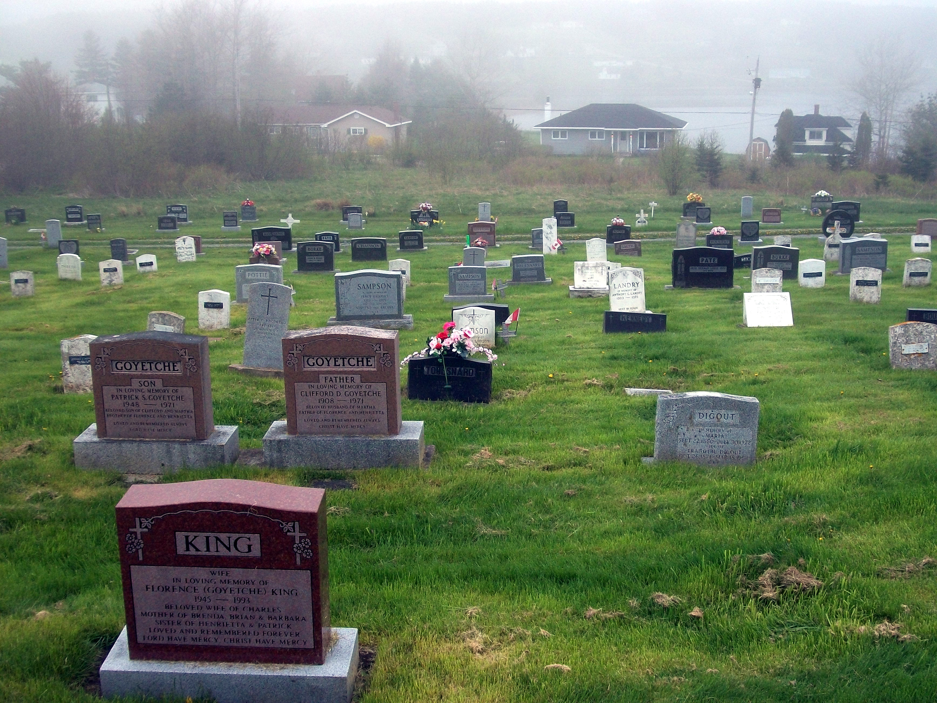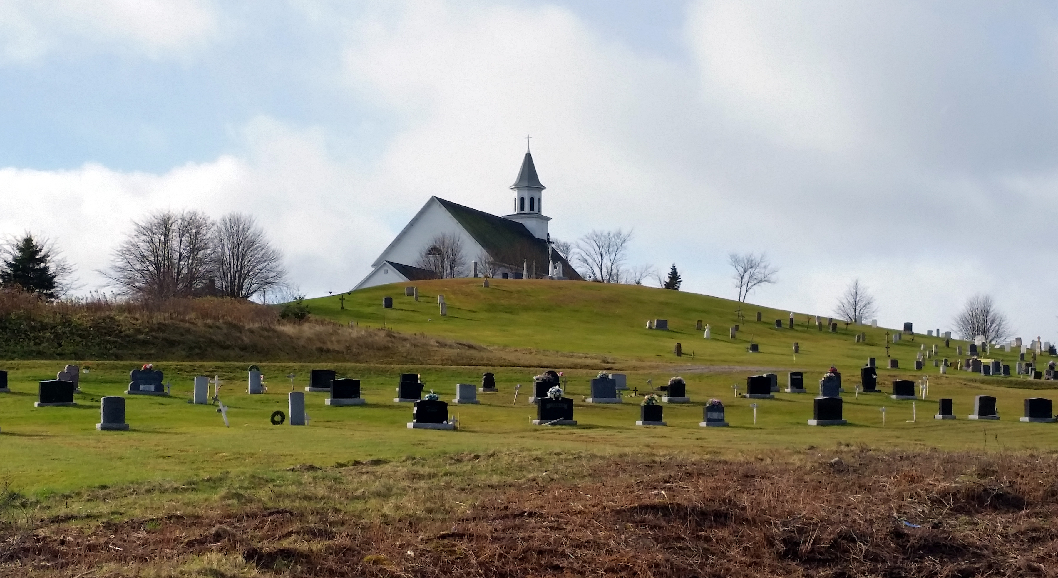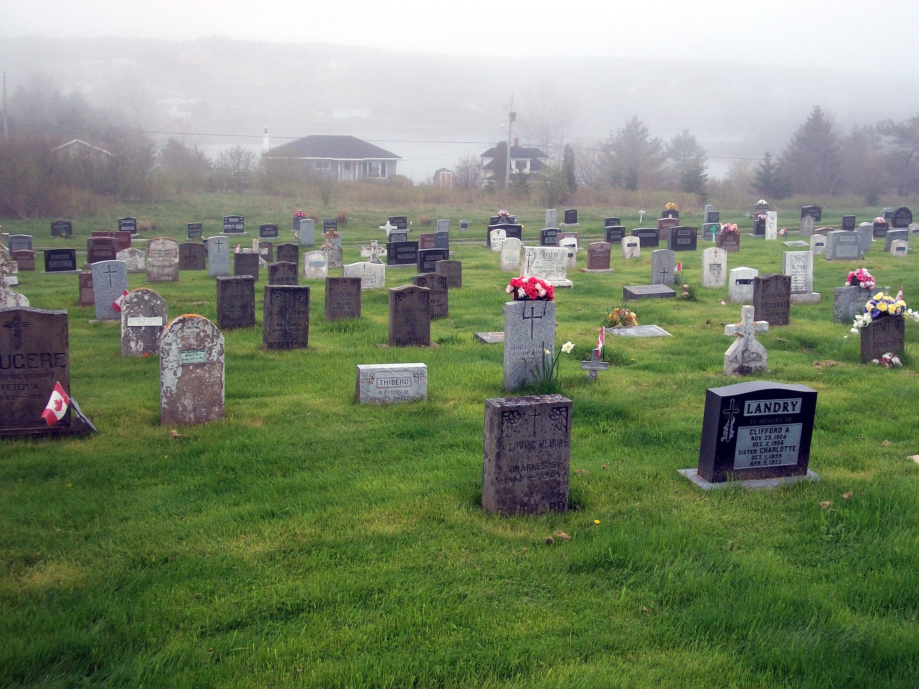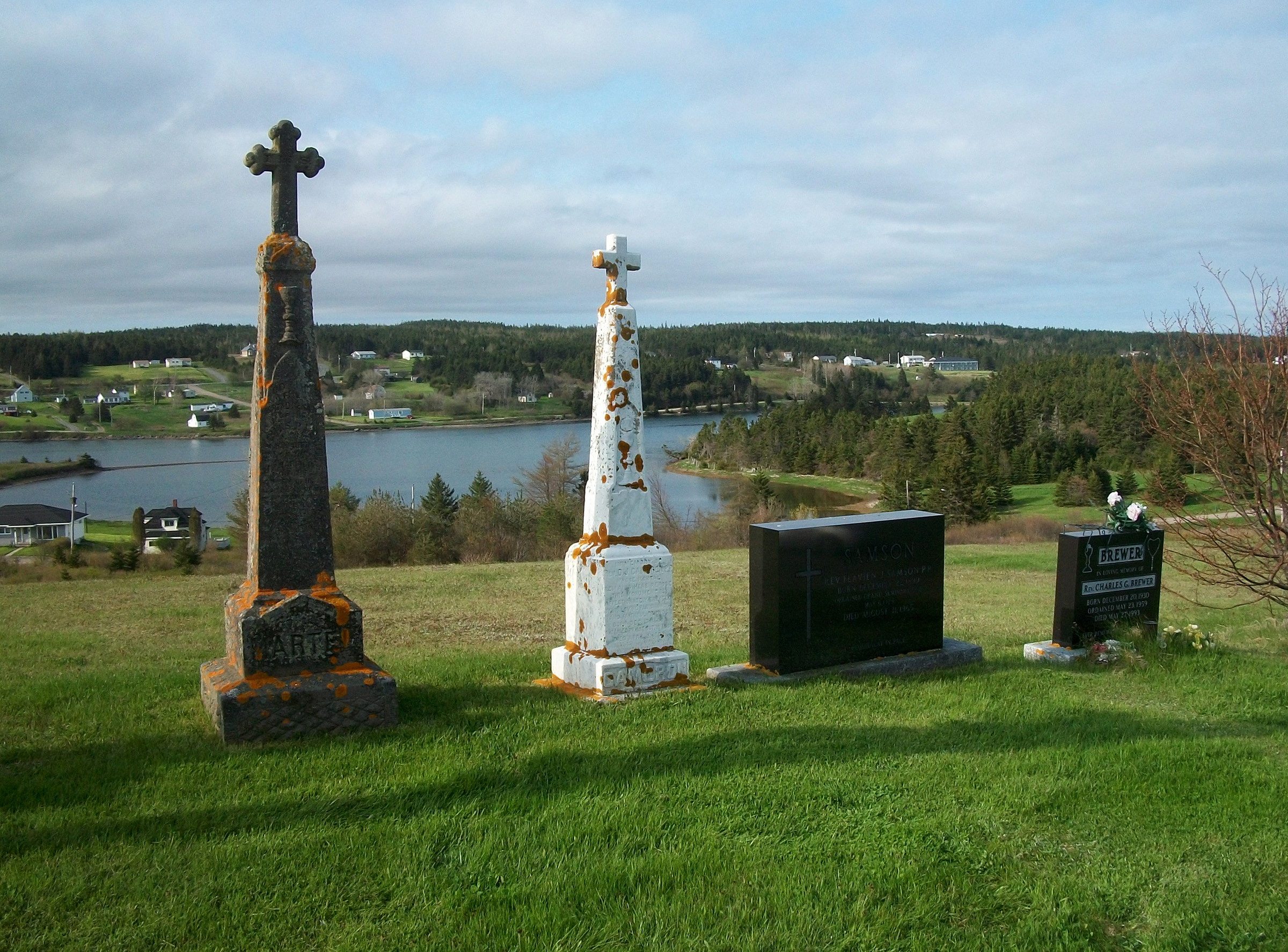 Many of the Bourg/Burke descendants and relatives are buried in the River Bourgeois and Louisdale church graveyards. These are photos of the River Bourgeois graveyard and the gravestones there, taken on a few different visits. This is a link to the Louisdale church page, where pictures of that church, graveyard and gravestones can be viewed.