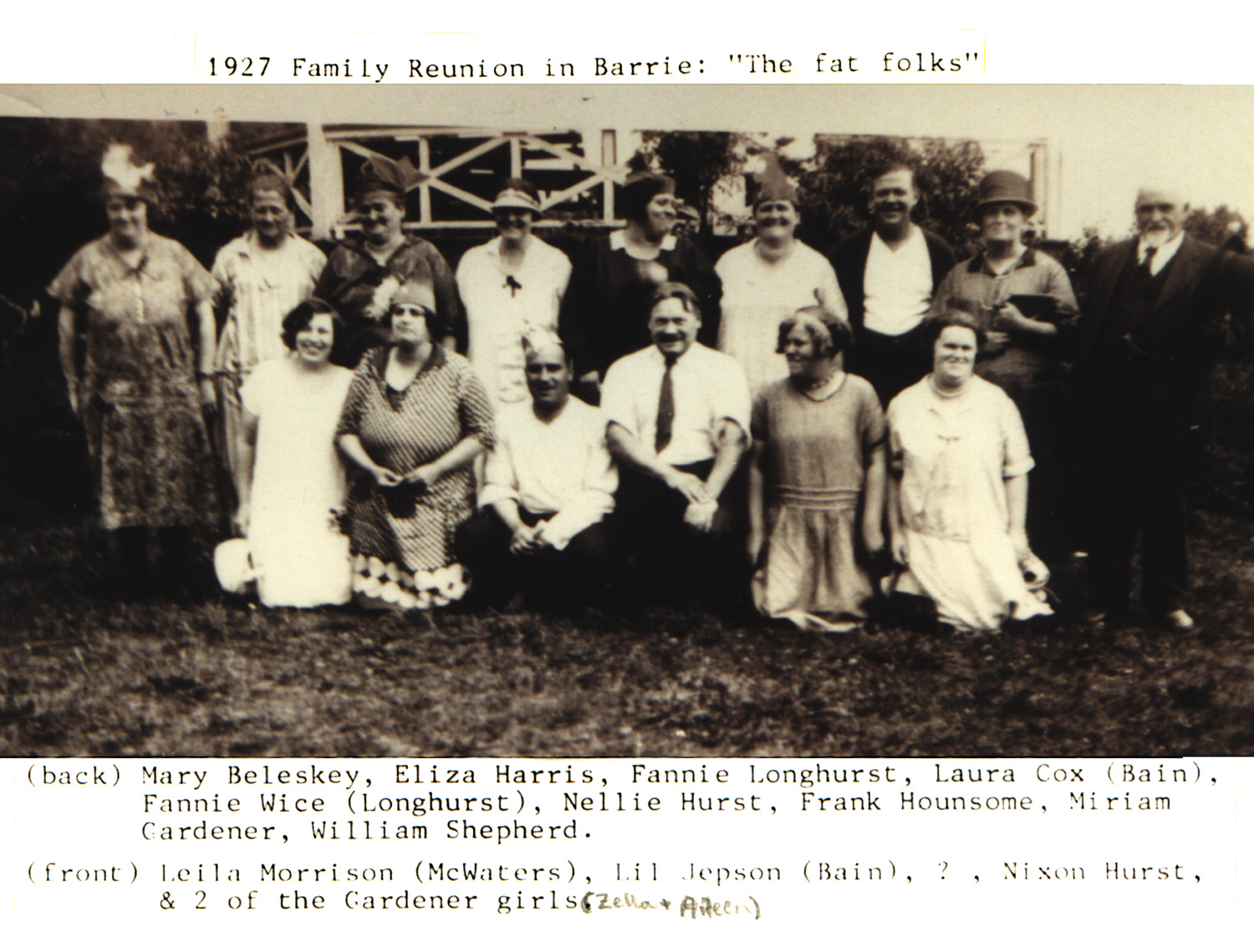 The photo above was taken circa 1901, by A. Hunter, Barrie, Ontario. The consensus of opinion of who these people are, based on info from Marion Skiffington and Margaret Cooper (Longhurst) is...
