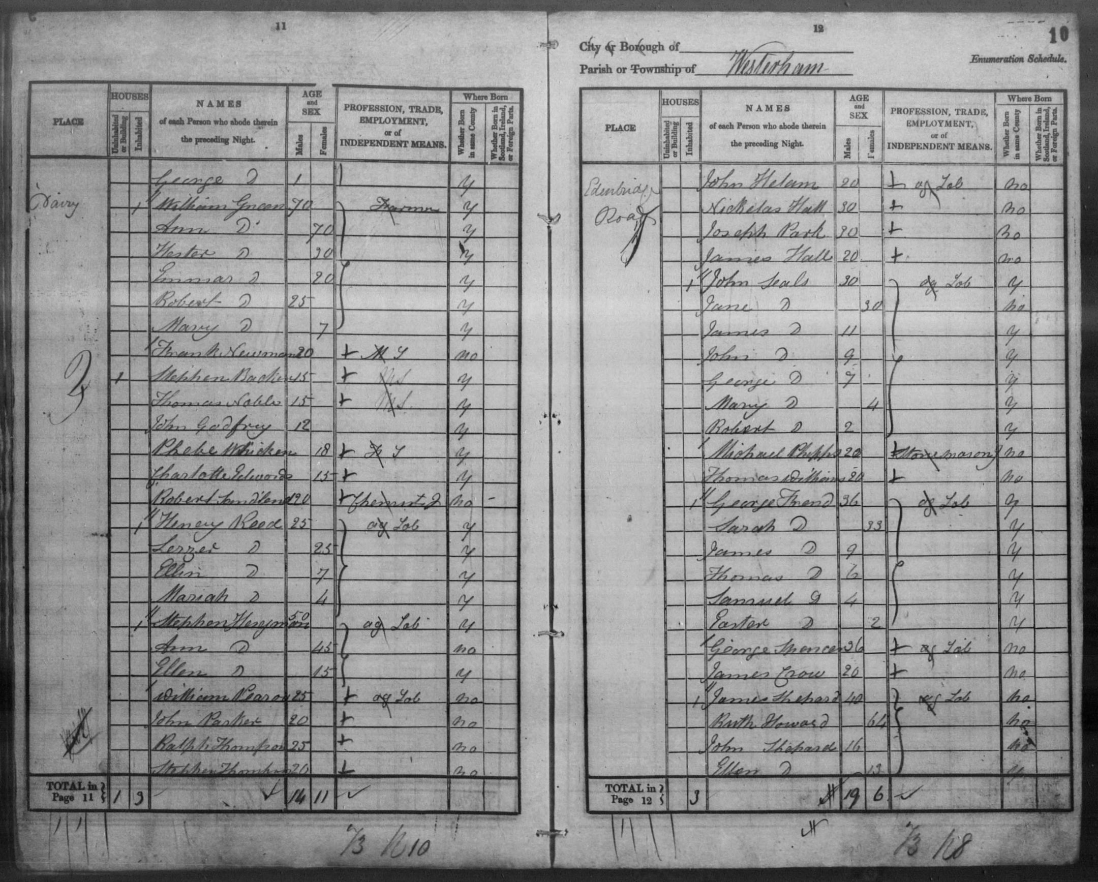 Q: Is it possible that this census entry which shows "Dairy" as the location could be referring to an actual dairy farm at which "ag lab."'s and their families could live year round at? Edenbridge, Kent, 1841.